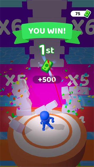 3、抵达终点后获得1st排名,界面弹出YOUWIN提示,同时获取+500的奖励道具,完成本关挑战。