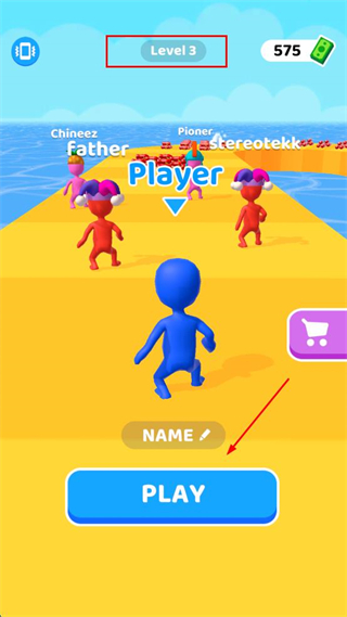 4、挑战结束后进入下一关界面,查看Level3标识,再次点击下方蓝色PLAY按钮,开启第三关竞赛。
