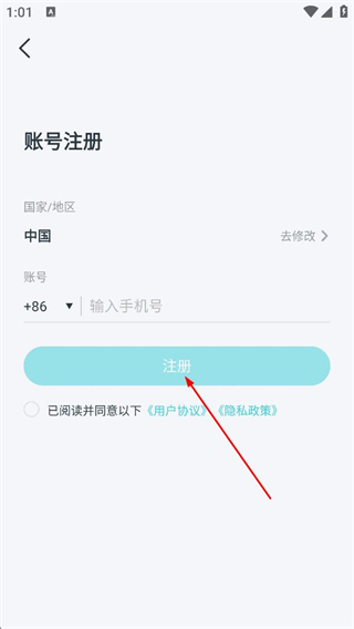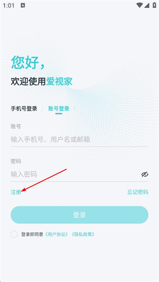 2、在账号登录页面,点击注册,进入账号注册页面。