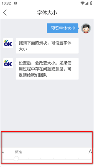 4、在字体大小页面,拖动底下滑块,可调整字体大小。