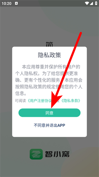 1、打开智小窝房东版,在弹出的隐私政策弹窗中,点击同意。