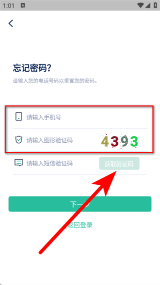 3、在忘记密码页面,输入手机号,点击获取验证码。