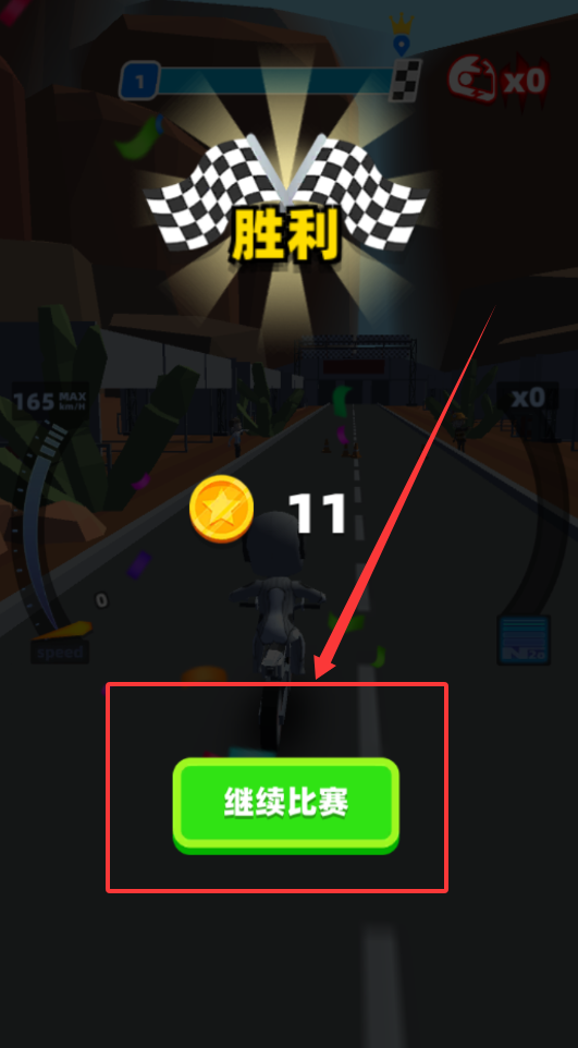 2、通过左右滑动控制方向并留意赛道加速带实现瞬时提速,同时注意规避路面陷阱确保安全行驶,完成初级关卡挑战。