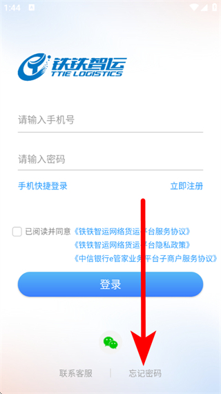 1、打开铁铁智运,在登录页面,点击账号密码登录,切换至密码登录界面。