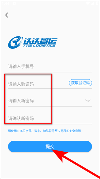 4、输入验证码,设置新密码后,点击提交,完成密码重置。