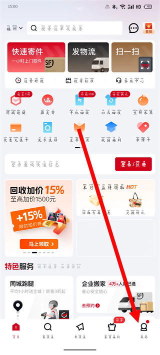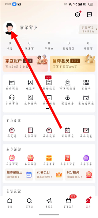1、打开顺丰速运,在主界面点击底部我的,进入个人中心页面。