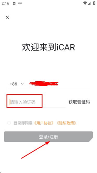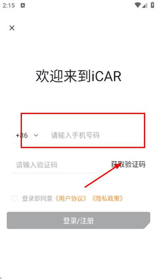 2、在登录页面填写手机号,勾选协议后,点击获取验证码。