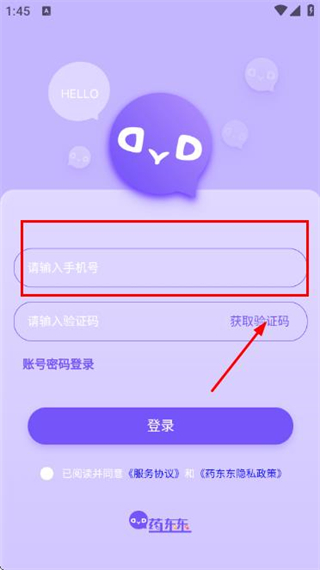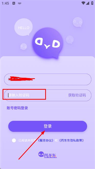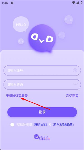 1、在药东东的登录页面,点击手机验证码登录,切换到手机验证码登录的界面。