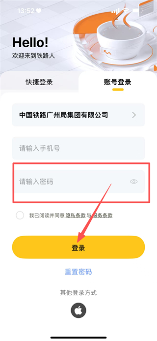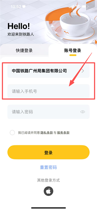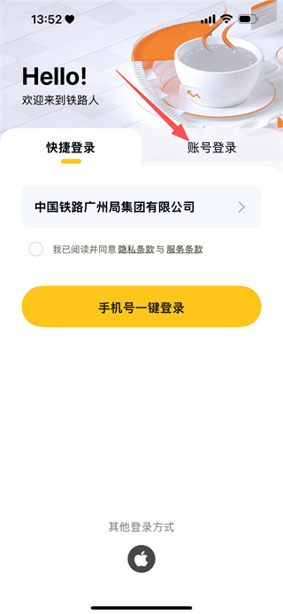 1、在APP登录页面,点击账号登录,切换至账号登录模式。