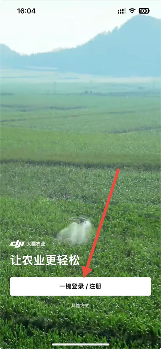 1、打开大疆农服App,在启动页点击一键登录注册按钮,进入登录注册界面。