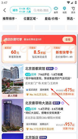 3、在酒店列表中,选择目标酒店,进入该酒店的详情页面。