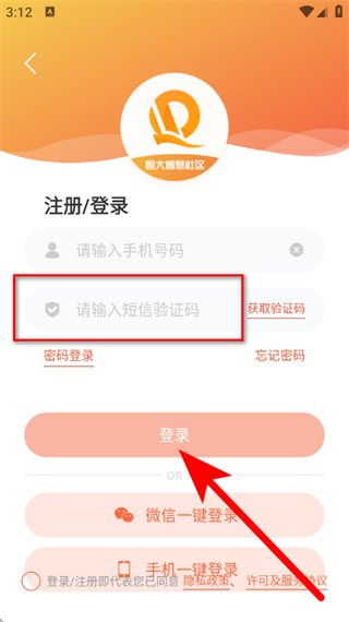 4、输入短信验证码,勾选协议后,点击登录,完成登录操作。