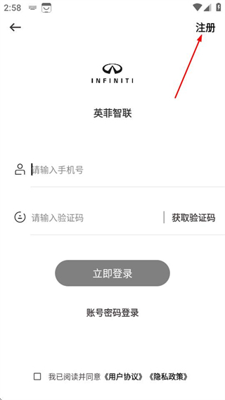 2、在登录页面,点击右上角的注册选项,进入账号注册页面。