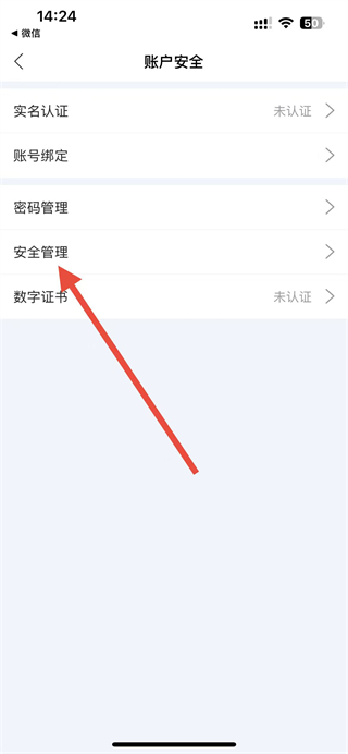 2、在账户安全页面,选择安全管理,进入安全管理界面。