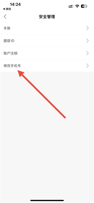 3、在安全管理页面,点击修改手机号选项,进入修改手机号界面。