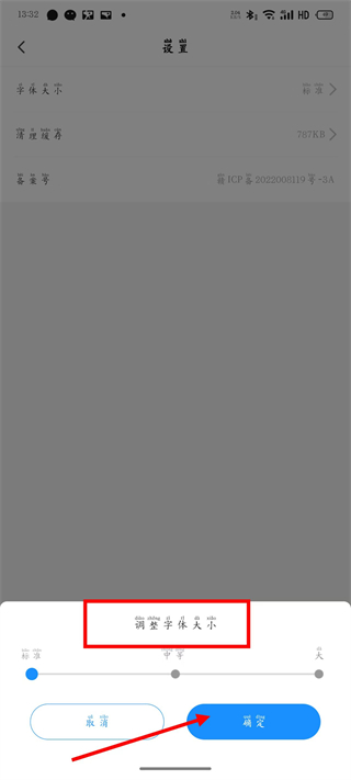 3、在设置界面,点击字体大小,弹出字体调整窗口。