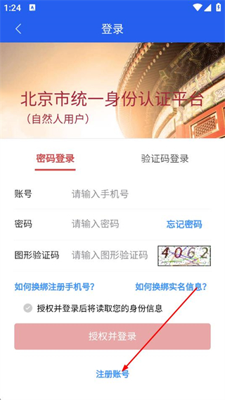 3、在登录页面,点击注册账号,进入注册信息填写页面。