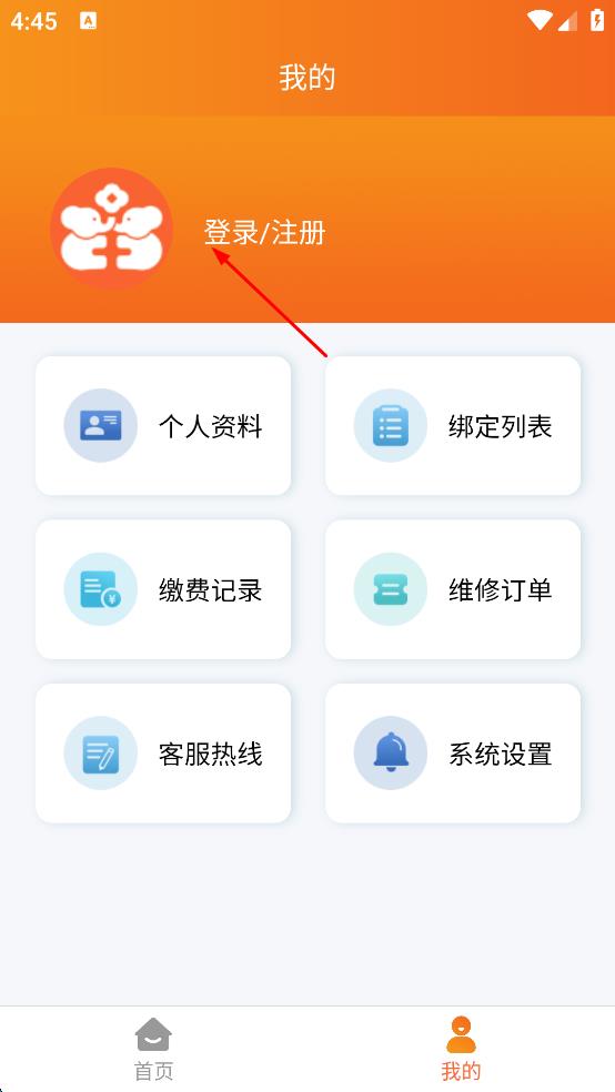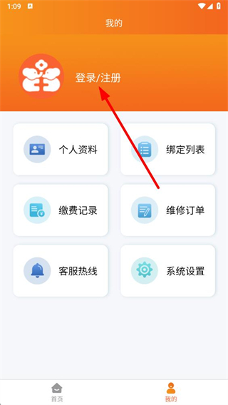 3、在个人中心页面,能看到登录/注册的提示,点击该提示区域,进入到登录页面。