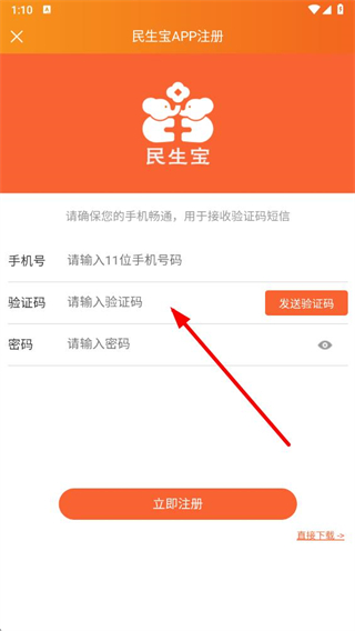 4、在登录页面,首先在对应的输入框中输入账号,然后在密码输入框中输入对应的密码,最后点击登录按钮,即可完成民生宝APP的登录操作。