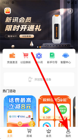 1、打开新讯,在主界面点击底部我的,进入个人中心页面。