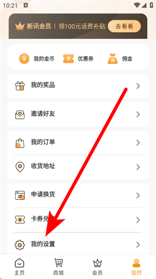 2、在个人中心页面,点击我的设置,进入设置界面。