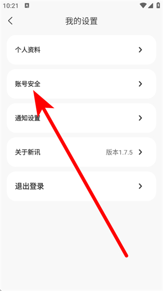 3、在设置界页面,点击账号安全,进入账号安全页面。