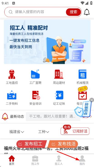 具备周边资源检索功能,可快速定位附近的建筑工人、设备租赁点、材料供应商等,实现本地化资源高效调配,满足即时性需求。