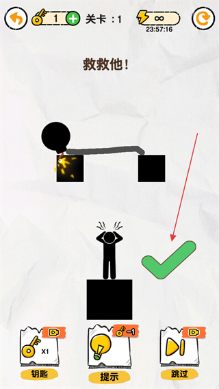 4、线条生效后出现绿色对勾,完成关卡救援目标。