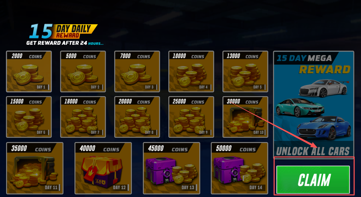 4、在坡道飞跃环节中充分发挥自身技巧,实现精彩的冲刺效果,同时逐步解锁并购买不同性能的车辆。