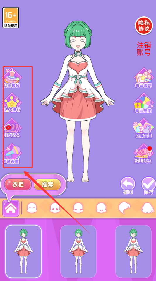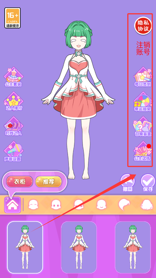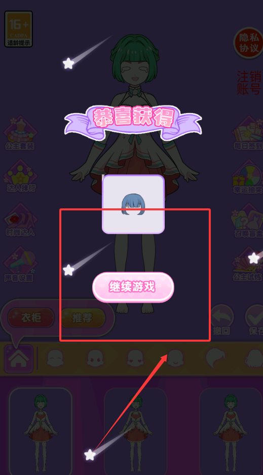 3、随着关卡推进将解锁更多精美服饰与特效贴纸,在挑战过程中需要灵活运用收藏功能将成功搭配的套装保存至相册。