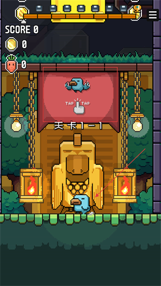 1、根据TAP-TAP提示,点击屏幕控制小鸟向上飞行,辅助调整移动轨迹。