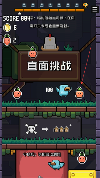2、场景中的金币、萝卜是收集元素,临时收集的萝卜在离开关卡后会重新刷新。