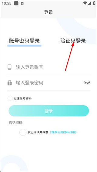 1、进入软件账号跳转账号密码登录页面后,点击验证码登录。