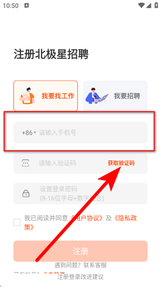 3、在注册页面,选择身份,输入手机号,点击获取验证码。