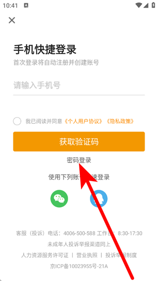 1、打开化工英才网,在手机快捷登录页面,点击密码登录,进入账号密码登录界面。