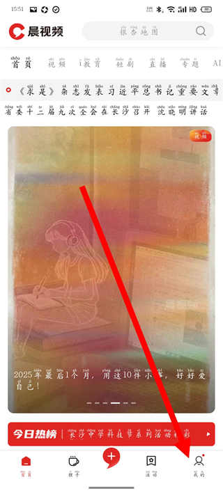 1、打开晨视频,在主界面点击底部我的,进入我的页面。