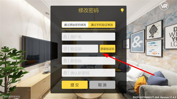 3、在手机验证修改页面,输入用户名,获取验证码,依次输入新密码,点击提交按钮,完成密码重置操作。