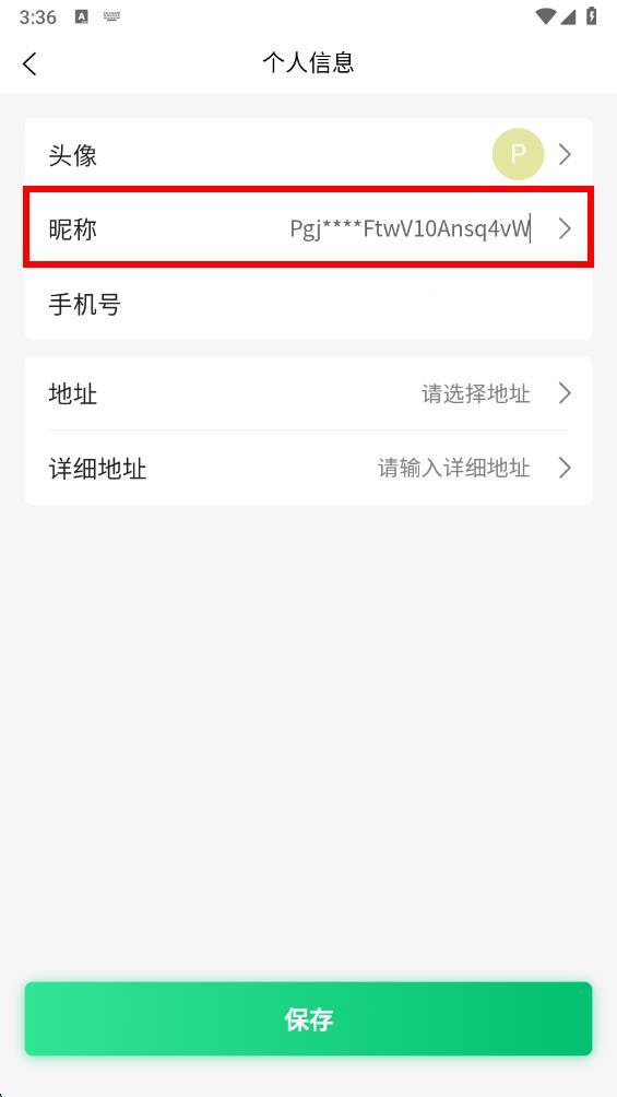 3、在个人信息编辑页面里,找到昵称选项,在昵称修改界面删除原昵称,输入新名字。