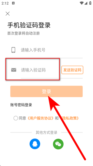 4、在验证码输入框中,输入验证码,勾选协议后,点击登录,完成账号登录。