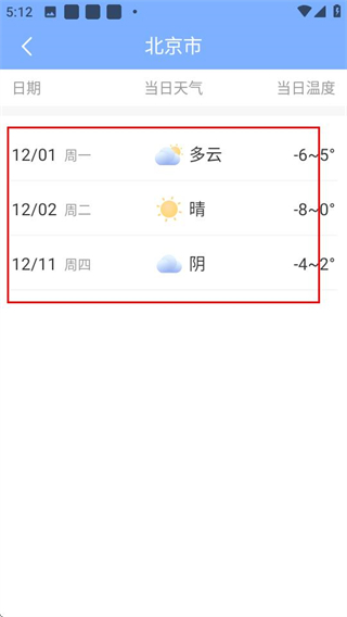 3、在该页面,能查看多日的天气、温度等详细预报内容。