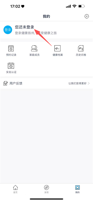 1、在健康扬州首页,点击底部导航栏的我的,进入个人页面。