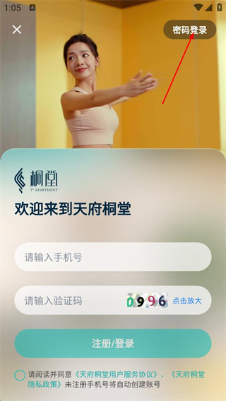 3、在登录注册界面,点击右上角的密码登录,切换到密码登录页面。