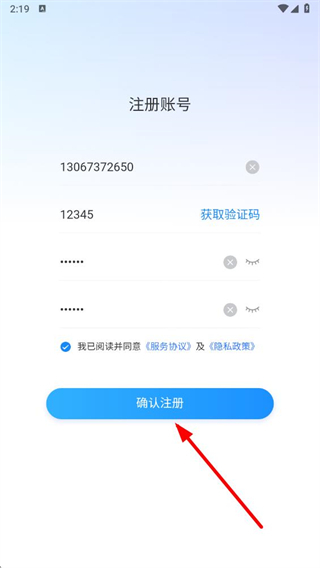 3、填写完成且勾选协议后,点击页面中的确认注册按钮,完成账号注册操作。