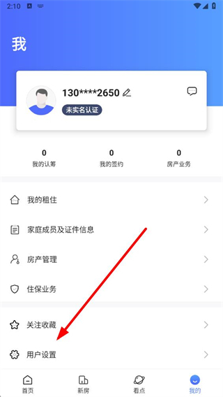 1、进入住房首页界面后,找到底部导航栏中的我的选项并点击,进入个人页面。