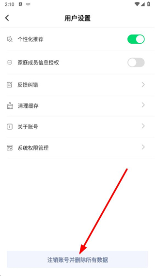 3、在用户设置界面里,找到注销账号并删除所有数据选项,点击该选项触发注销流程。