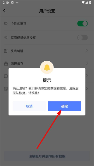 4、在弹出的提示弹窗中,确认要注销后点击确定按钮,完成账号的注销操作。