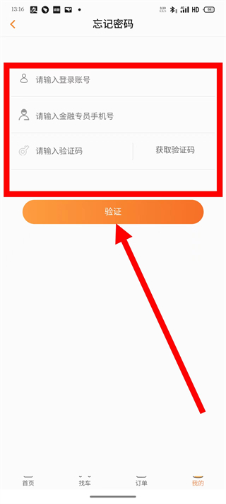 4、在忘记密码页面,输入登录账号,点输入验证码,点击验证。