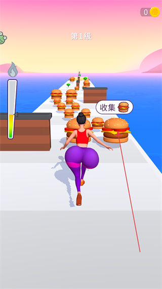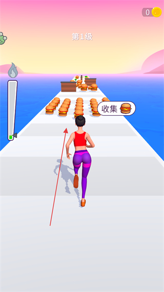 1、进入第1级,操控角色向前奔跑,收集道路上的汉堡。
