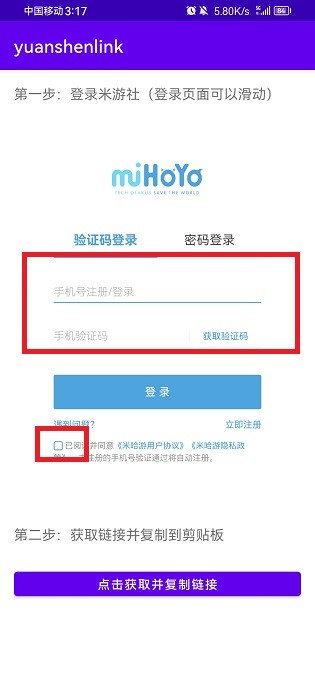 3、打开yuanshenlink填写mihayo账号信息并登录(提瓦特小助手官方支持工具,可以放心填写登录)