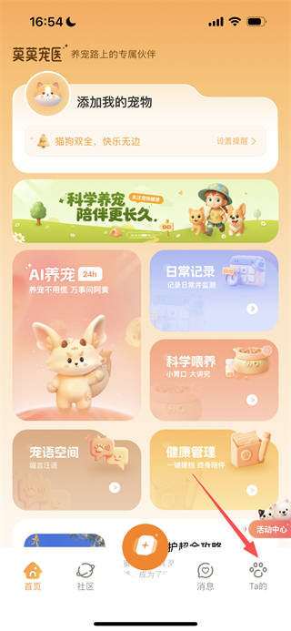 适配不同品种、年龄段宠物的养护场景,幼宠喂养、成年宠护理、老年宠健康管理均有对应功能支撑,满足铲屎官多样化的养宠服务需求。